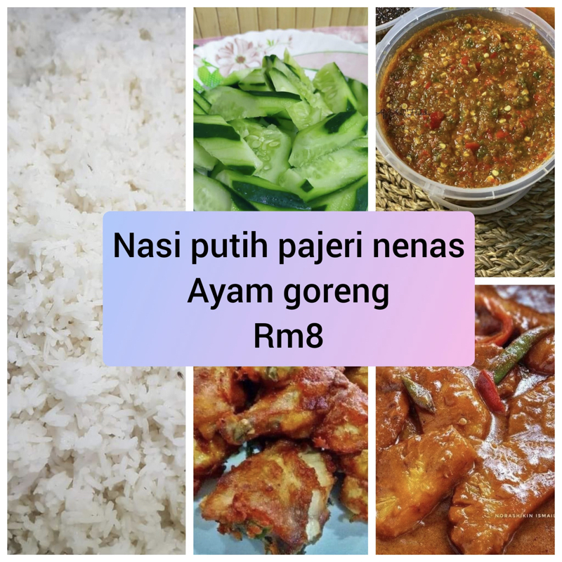 Nasi Putih Pajeri Nenas Ayam Goreng